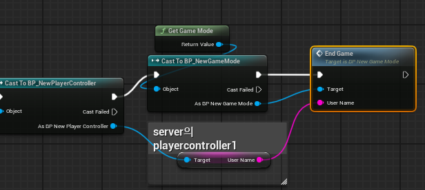 - GameMode의 EndGame 함수는 PlayerController를 찾아서 PlayerController의 EndGame 이벤트를 call한다.