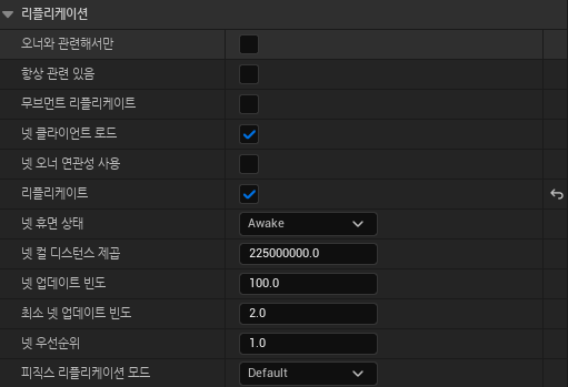 - "서버에서 실행"과 "소유 중인 클라이언트에서 실행"과 같은 리플리케이트 속성은 어떻게 지정해야 하는지와 각각 지정한 경우 어떤 식으로 값들이 세팅되는지