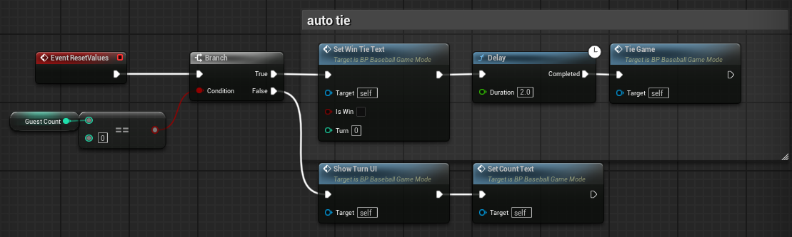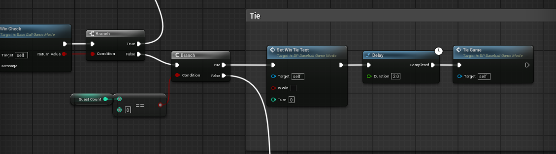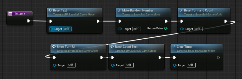 - 아래 사진과 같이 비겼다는 것을 알려주는 UI 출력을 위해 Set Win Tie Text 함수를 호출 후