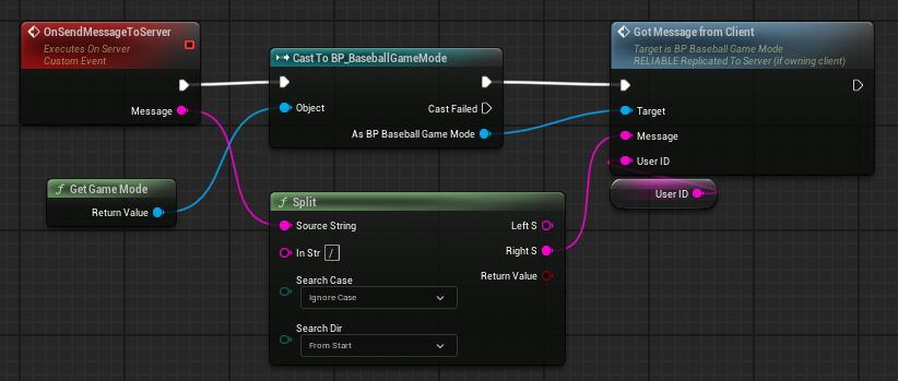 - GameMode의 GotMessagefromClient 이벤트는 "서버에서 실행"으로 동작한다.