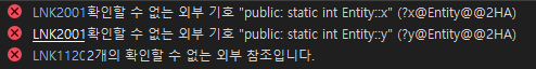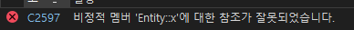 만약 멤버 변수인 x, y를 static으로 바꾸면 이니셜라이저를 사용한 부분에 있어서 오류가 뜨게 된다.