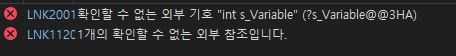 정답은 staticmain에서 아래와 같은 오류가 발생하게 된다. 즉 외부에서 s_Variable을 찾지 못한다는 의미이다.