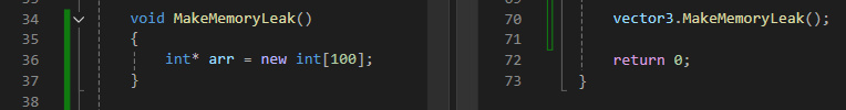 - 위의 코드에서 메모리 누수가 발생한 것은 내가 잘못된 곳에서 _CrtDumpMemoryLeaks() 를 호출했기 때문이다.