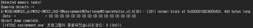 - 우선 위의 코드에서 _CrtDumpMemoryLeaks()는 다 없애버려야 한다.