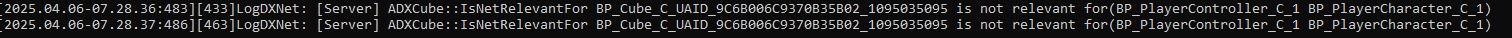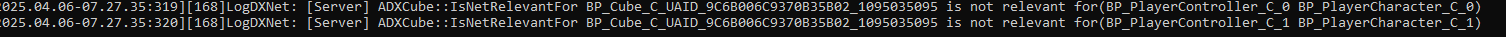 DX_LOG_NET(LogDXNet, Log, TEXT("%s is not relevant for(%s %s)"), *GetName(), *RealViewer->GetName(), *ViewTarget->GetName());