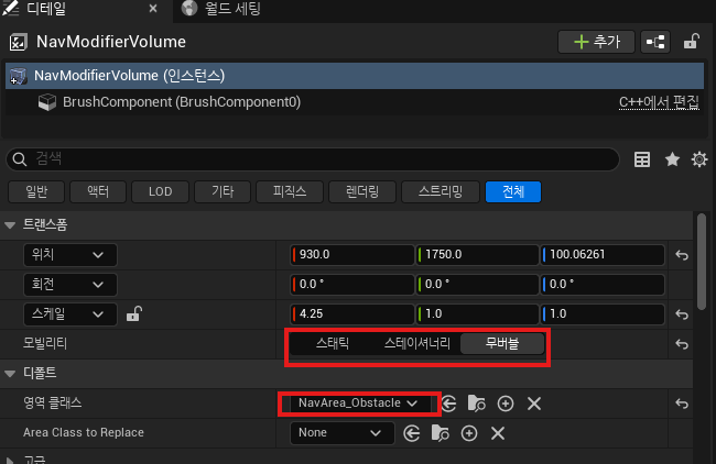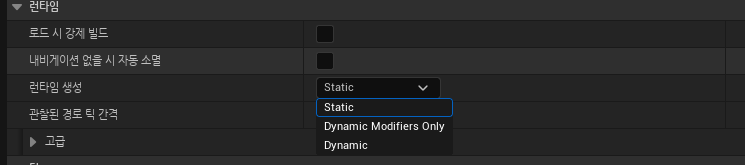 - 내비게이션 매시의 런타임 생성은 Dynamic으로 설정 해준다.