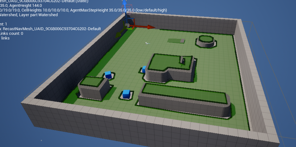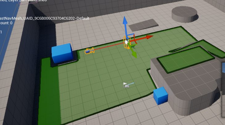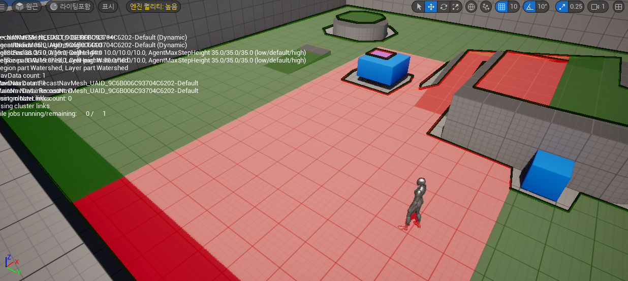 - 아래와 같이 레벨에 설치 후 단축키 P를 통해서 내비메시가 깔린 범위를 체크할 수 있다.