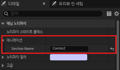 각 애니메이션 노티파이 스테이트에 있어서 C++로 만들어 둔 변수에 아래와 같이 다음으로 재생할 section의 이름을 넣어준다.