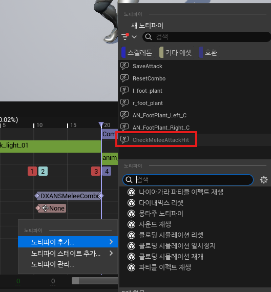 위에서 만든 로직은 애니메이션 몽타주에서 재생할 수 있도록 애님 인스턴스 클래스에 Notify 함수를 만들어서 실행시켰다.