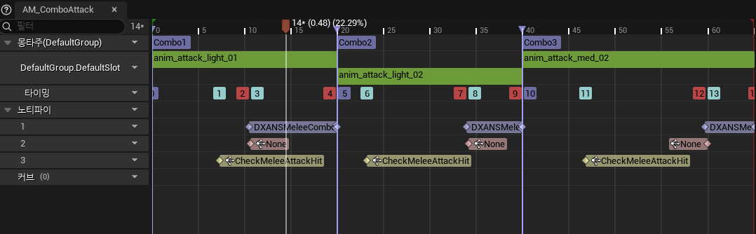 애니메이션 몽타주에서 Section을 이용하여 콤보 공격을 구현할 것