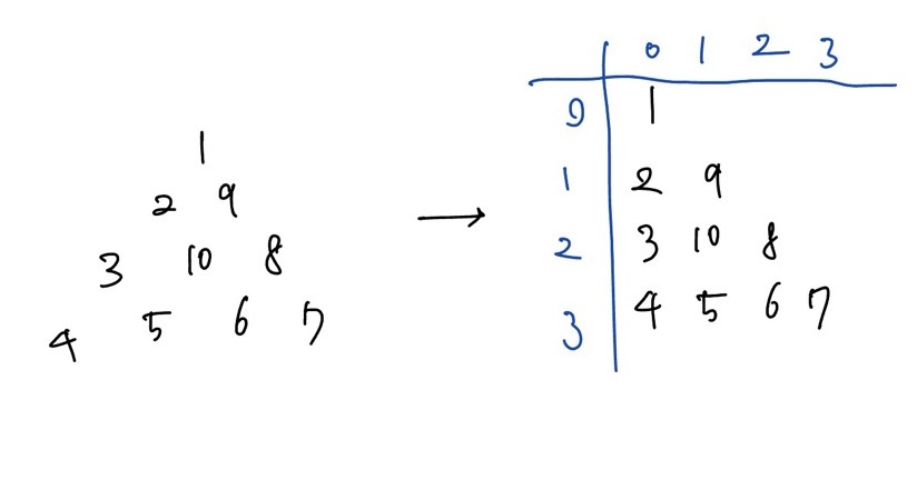 - y가 증가하는 방향은 열이 증가하는 방향