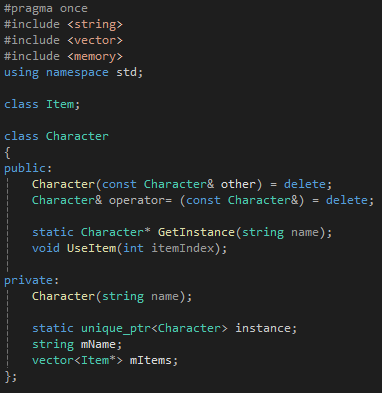 unique_ptr<Character> playerCharacter = move(Character::GetInstance(name));