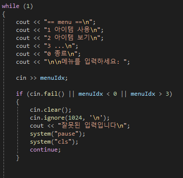 - 입력 값이 int이고, 0이상 3 이하의 숫자만 입력받고, 아니면 다시 입력을 받도록 한다.