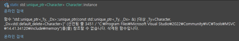 - move를 통해 GetInstance를 통해 받은 참조값을 playerCharacter 라는 unique_ptr로 이동시켜주어서 사용하면 된다.