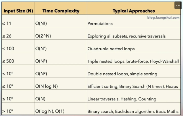 - N이 10^6 이상인 경우 O(NlgN)이 마지노선, O(N) 정도의 복잡도 필요